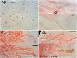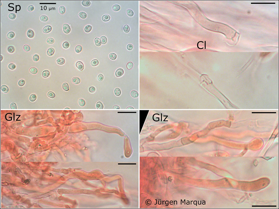 Sporen [95% • 21 • SAP • v • H2O(nat)]: 4,3-5,2-6,1 x 3,4-4,0-4,6(4,7) µm, Q = 1,1-1,3-1,5, Vm = 43 µm³;
