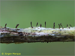 07.06.2015, MTB 7723/1/2/4, Mundingen – Tiefental, 610 ü. NN, gesellig auf vorjährigen Brennesselstängeln zusammen mit Leptosphaeria acuta (Urtica spec.), leg. & det. J. MARQUA.