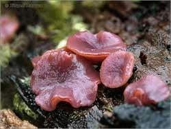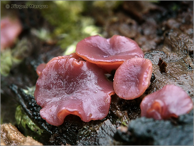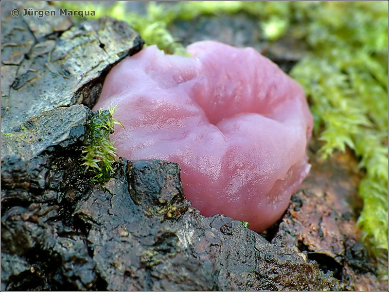 Substrat ansitzend), gallertig, rötlich, violett – fleischfarben, ca 20 mm breit und 7-10 mm hoch, aus morschem