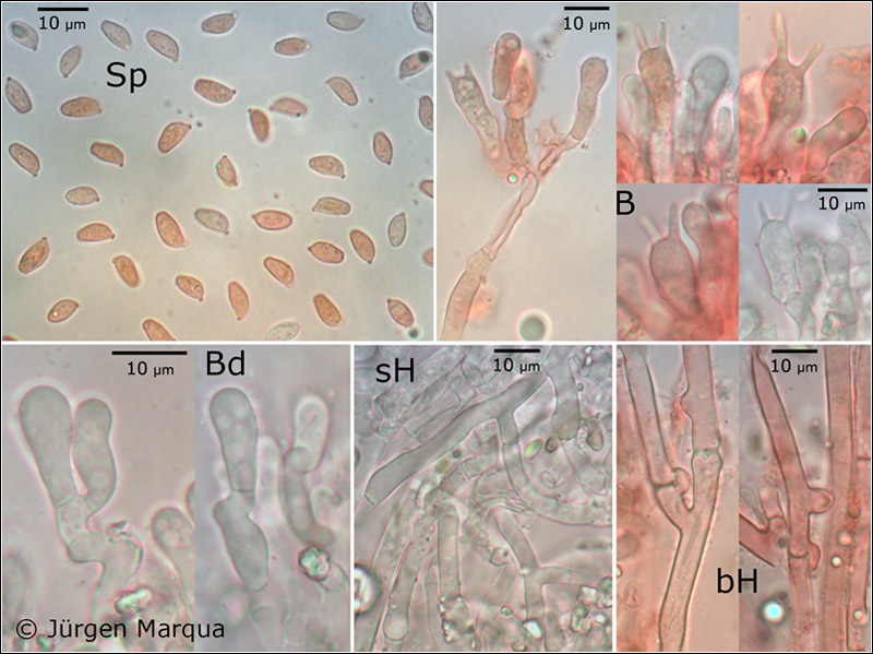 Sporen [95% • 44 • SAP • v • H2O(nat)]: 6,1-7,1-8,1(8,2) x 3,1-3,6-4,2 µm; Q = 1,7-2,0-2,3; Vm = 50 µm³;