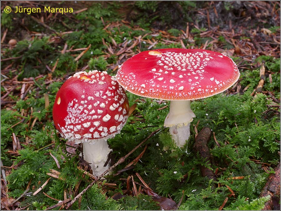 mehrere Exemplare in der Nadelstreu bei Weißtannen und Fichten (Abies alba, Picea abies), leg. & det. J. MARQUA.