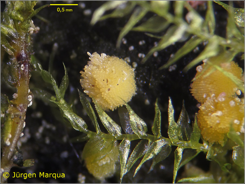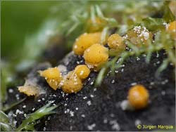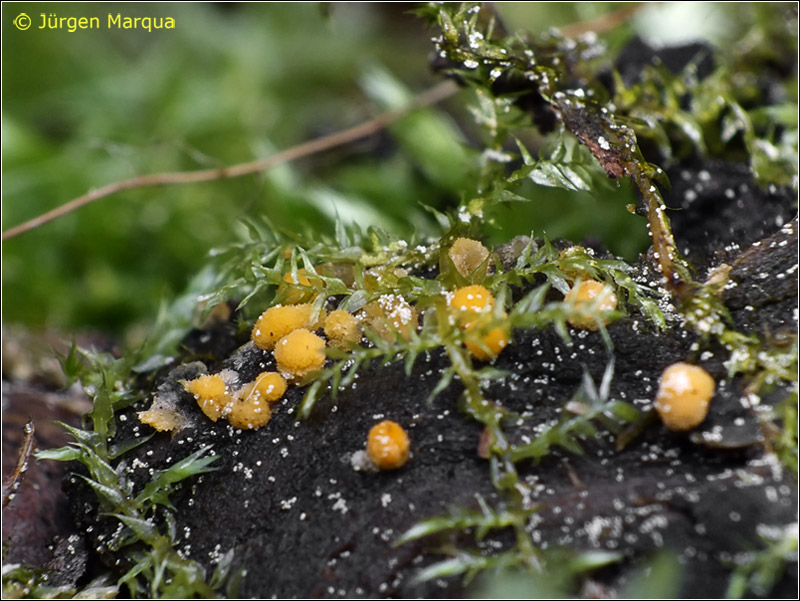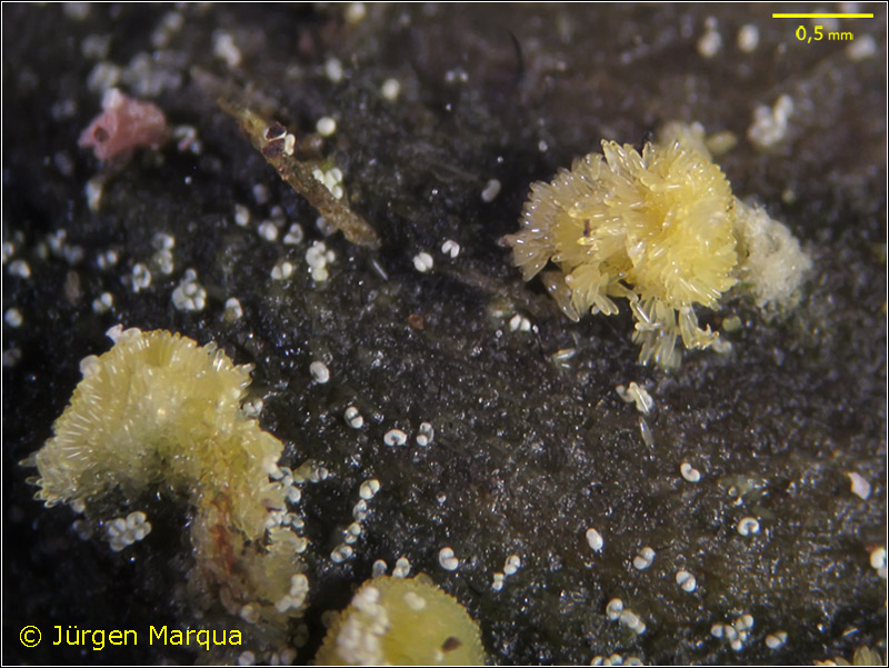 Sporodochien 0,5-1 mm breit und 1 mm hoch, kissen- bis pustelförmig, zitronengelb bis orangegelb, ausschließlich aus pigmentierten Konidien bestehend, die einem konidiogenen, weißlich hyalinen Hyphenkern entspringen. Gesellig bis gedrängt, auch fast zusammenfließend direkt auf morschem Holz oder Detritus (Moos / Fichtennadeln).