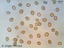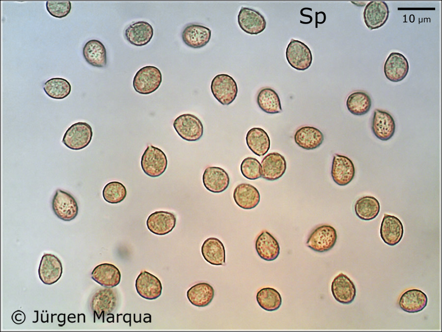 Sporen [95% • 19 • SAP • v • H2O(nat)]: 6,8-7,7-8,6 x 5,4-6,1-6,9 µm; Q = 1,1-1,3-1,5; Vm = 152 µm³; rundlich bis breitellipsoid, bräunlich, mit flachem, zusammenlaufendem Ornament.