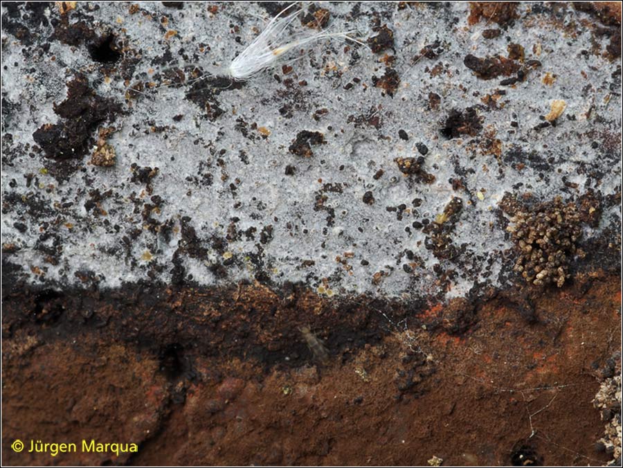 auf unbestimmten Rindenpilz an einem liegenden Eichenast (Quercus spec.), leg. & det. J. MARQUA.