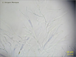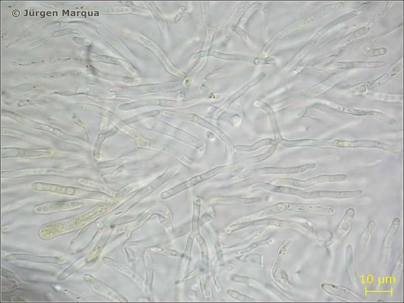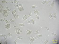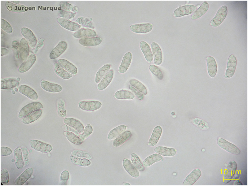 Vm = 236,6 µm³; ellipsoid – allantoid, dünnwandig, mit 1-3 Septen!; Hyphen ohne Schnallen.