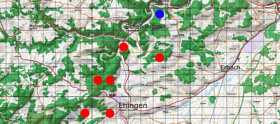 - KRIEGLSTEINER (2000) gibt von folgenden MTB-Quadranten unseres Kartiergebietes Fund-Nachweise an: