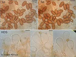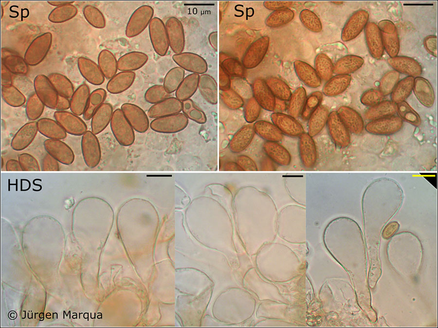 Sporen [95% • 25 • SAP • v • H2O(nat)]: 10,1-12,1-14(14,6) x (4,8)4,9-5,8-6,7 µm; Q = 1,7-2,1-2,5; Vm = 213 µm³;