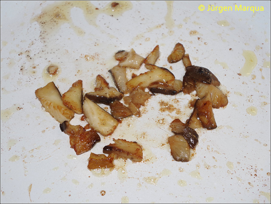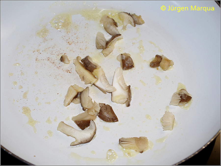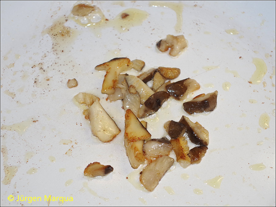Nach 3-4 Minuten Schmoren ein angenehm würziges Pilzaroma entwickelnd, das etwas süßlich ist.