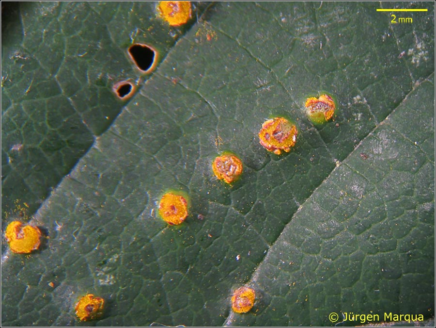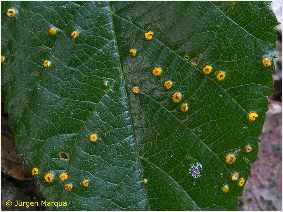 auf Blattoberseiten der Brombeere (Rubus sectio rubus), leg. & det. J. MARQUA.