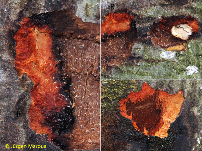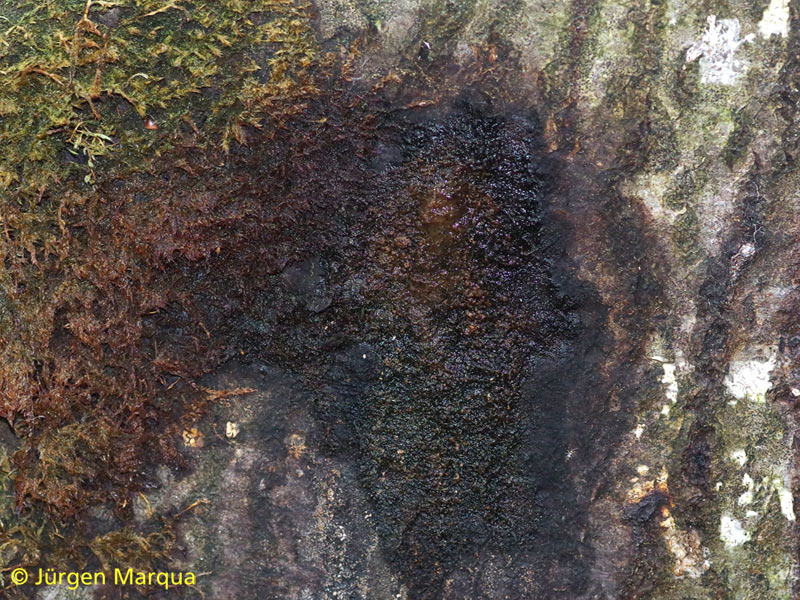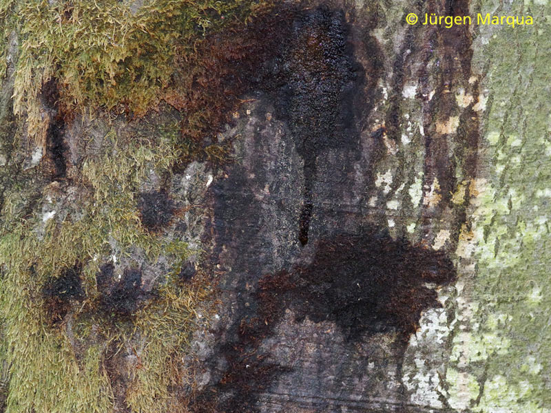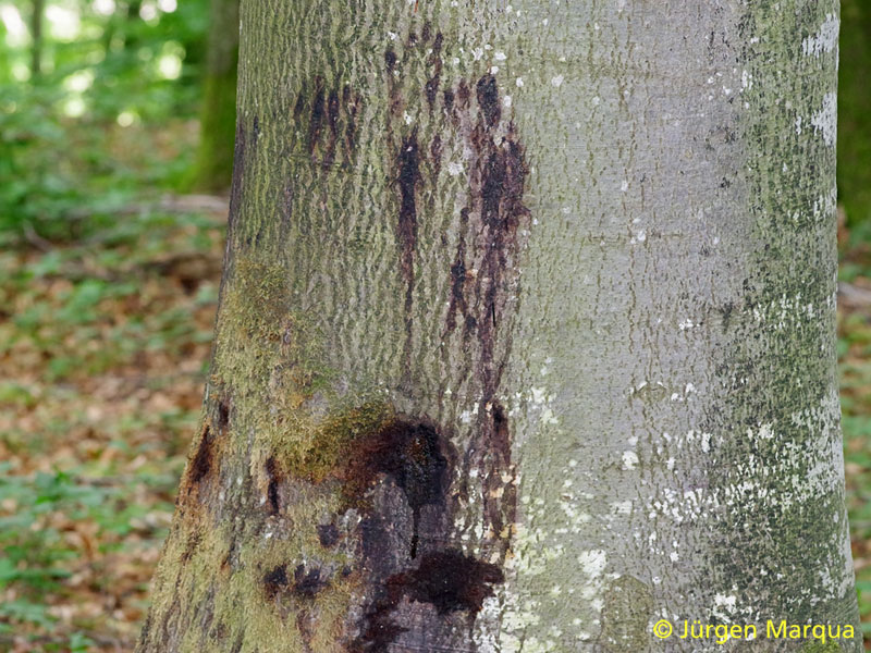 06.06.2020, MTB 7723/2/2/3, Mühlen – Hohenlau, 683 ü. NN, Rindennekrose und Schleimfluss am Stammfuß einer Buche (Fagus sylvatica), leg. & det. J. MARQUA.