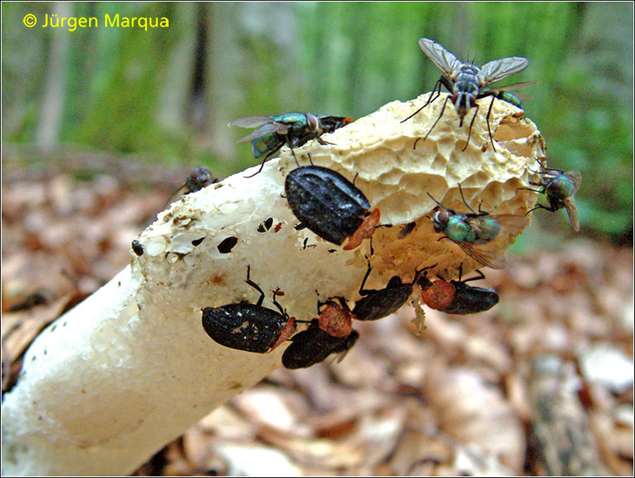 Die Sporenverbreitung geschieht hier mittels aasliebender Insekten, die sich beim Pilzbesuch mit der Sporenmasse beschmieren.
