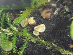 Apothecien 1 – 2,5 mm Ø, schüsselförmig – konvex, auch büschelig wachsend, und dann