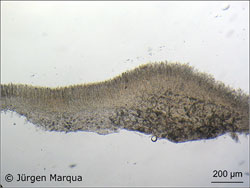 entalem Excipulum und Medulla. Paraphysen mit lichtbrechenden Vakuolen, die sich