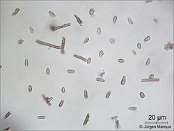 Konidien: 4-6 x 1-2,5 µm; ellipsoid – zylindrisch. Hyphen und sich verzweigende Konidiophora oliv- bis graubraun.